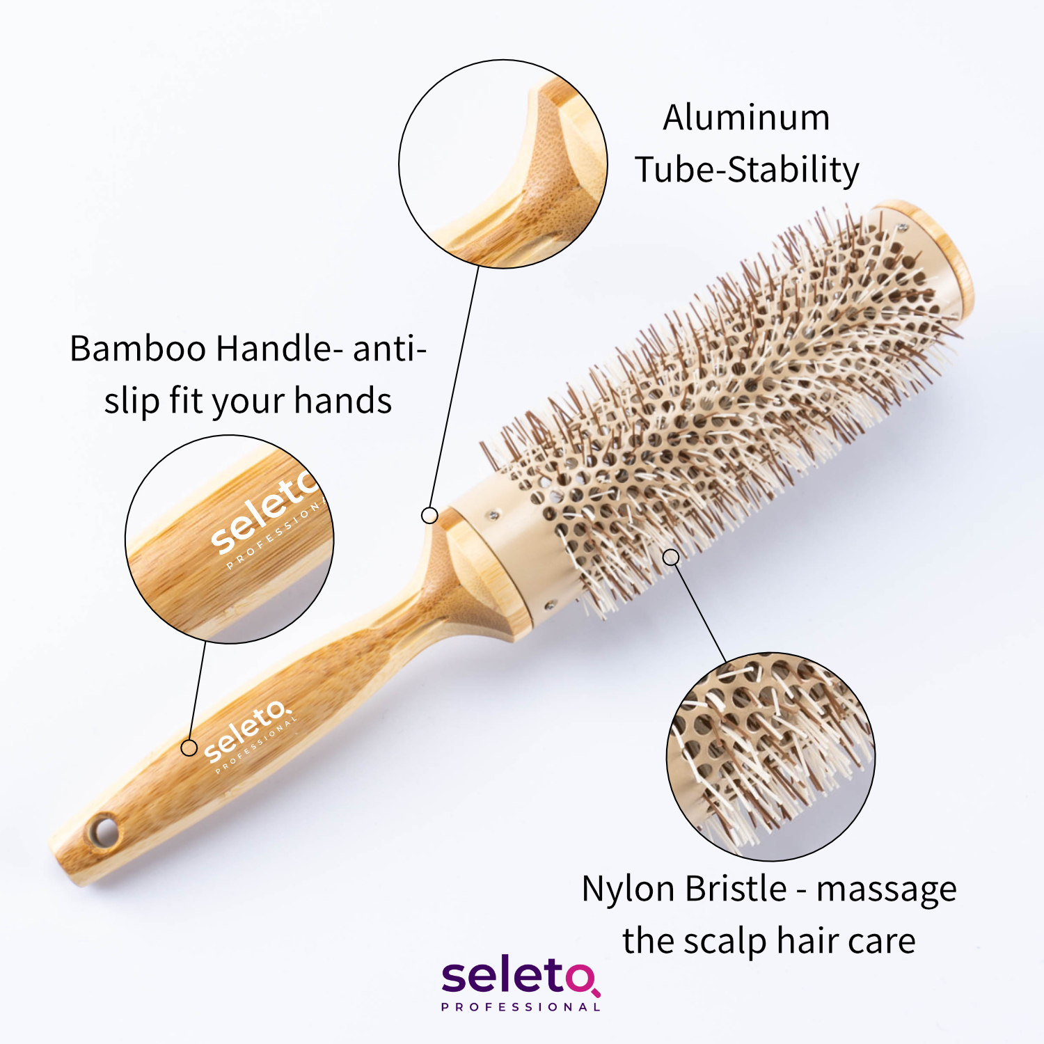 Eco Friendly Bamboo High Temperature Resistant Ceramic Iron Ionic Hair Brush Hair Style Round Brush